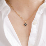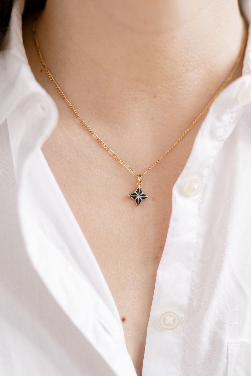 The Benedicta enamel pendant is a four-point star enameled with a deep, celestial ink. Beautiful and timeless, it reminds us to live in the light of eternity. "Each woman who lives in the light of eternity can fulfill her vocation, no matter if it is in marriage, in a religious order, or in a worldly profession." -St. Teresa Benedicta of the Cross
